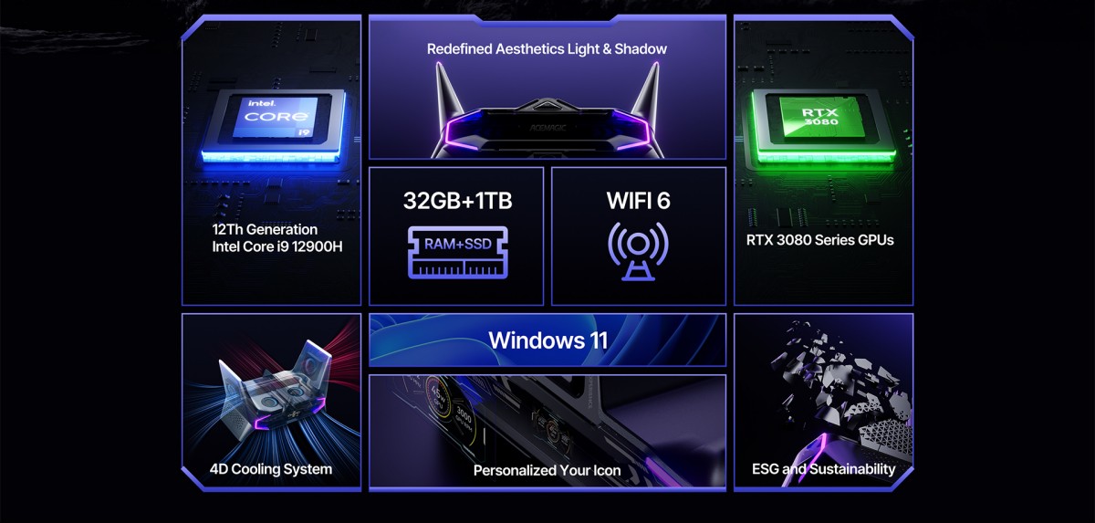 M2A Intel Core Cores14 Threads 20 i7 12700H i9 12900H Gaming Mini PC Nvidia GeForce RTX 3060 3070