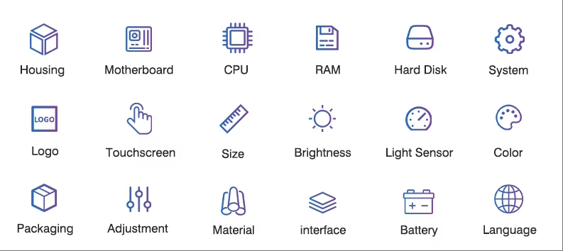 OEM Details: Logo, Box, CPU, RAM, ROM, BIOS, System, Color, Sticker